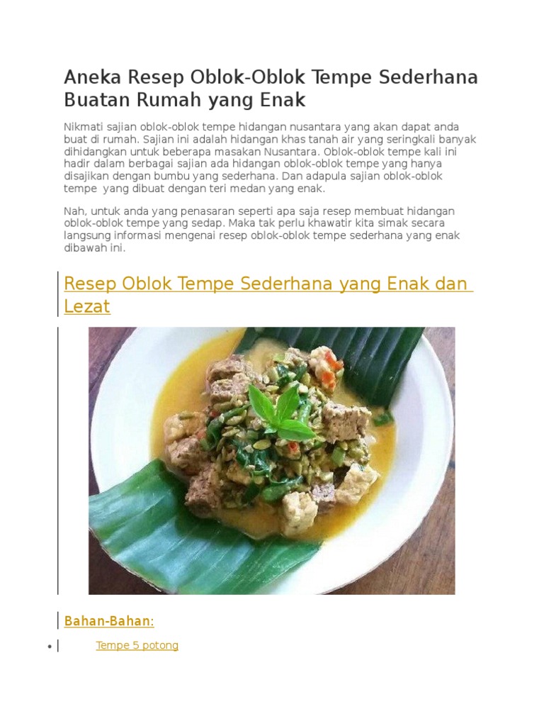Jul 23, 2020 · resep mudah membuat sayur tempe. Terima kasih sudah uji coba dan selamat menunaikan ibadah puasa. Lihat juga resep oblok oblok tempe fiber creme enak lainnya. Cobalah pakai resep gulai daun singkong dari sumatra enak juga apalagi pakai teri goreng hmmm.